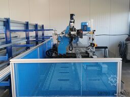 Technical data: • Measuring length: 6,000 mm • Total length: 8,000 mm • Stable machine base • Drilling head speed: up to 2800 rpm • Tool holder: HSK 50 • Drive of the X, Y and Z axis via servomotors • Rapid traverse in the X Axis: 18 m/min • Rapid traverse in the Y-axis: 5 m/min • Distance between the top edge of the table and the bottom edge of the tool holder 245 mm • Table width 450 mm • Working height: 1005 mm • Drilling diameter: 3 to 15 mm in St. 50 (depending on the tool) • Machining path in the Y-axis: 230 mm • Tolerance in the X-axis: +- 0.1 mm/m • Tolerance in the Y-axis: +- 0.05 mm • Tolerance in the Z-axis: +- 0, 05 mm • System weight: 2000 kg • System dimensions: 8000 mm x 2000 mm x 2388 mm (see layout plan) • Power connection: 32 A • Air connection: 8 bar • Protection of the system at the front via light barrier • Access protection at the rear, machine fence • Simple programming of the machine • Cooling takes place by means of a minimum quantity spray system • Without material clamping vices • Digital hand wheel