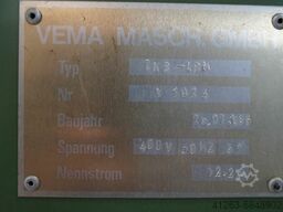 Woodworking machine circular saw VEMA TKS LBM, year 1996, with milling-drilling device, data milling-drilling device: speed: 3.000 rpm, table size: 570 x 300 mm, drilling depth: 150 mm, drilling length: 210 mm, height adjustment: 170 mm, two-jaw chuck: up to 20 mm, data saw: speed 3000-6000 rpm, up to 450mm blade, cutting height up to 155mm, angle cut 0°-45°, table dimensions 1260x1100mm expandable width with longitudinal fence 2200mm, extra table 750x950mm